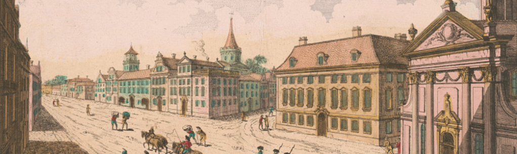 Featured Image: Franz Xaver Habermann, Vuë de Boston. Prospect der König Strasse gegen das Land Thor zu Boston / Vuë de la Rue du Roi vers la Porte de la Campagne a Boston (1778), Library of Congress.