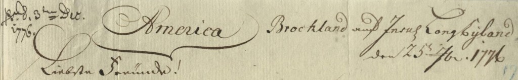 America                      Brockland [Brooklyn] auf Insel Long Eyland [Long Island], den 25ten Sept. 1776
