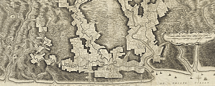 Algemeene kaart van de Colonie of Provintie van Suriname met de rivieren, districten, ontdekkingen door militaire togten […], (1758), Leiden University Libraries.