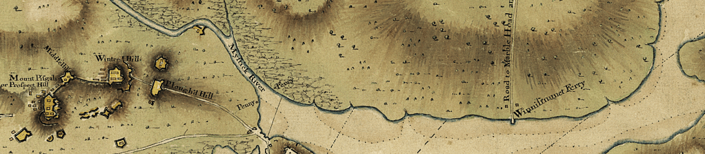 Featured Image: [Detail] John Montrésor, A draught of the towns of Boston and Charles Town and the circumjacent country shewing the works thrown up by His Majesty’s troops, and also those by the rebels, during the campaign [1775]. Library of Congress Geography and Map Division.
