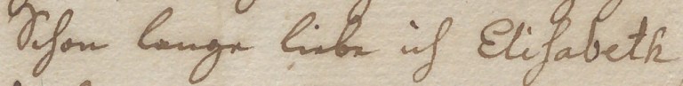 Ich wage es Erw. Hochwohlgebohrne Gnaden meine unterthänigste Bitte selbst vorzulegen. Die Vortsellung ein hilfloses Frauenzimmer unglücklich gemacht zu haben (indem Elisabeth von mir schwanger ist). Welches mir ihr ganzes Vertrauen geschenkt hatte; und die traurige Lage, in welcher sie sich anjetzo befindet, indem sie zu Ende dieses Monats ihre Herrschaft verlaßen muß, und keinen Zufluchts=Ort weiß, fordern es als Pflicht von mir Erw. Hochwohlgebohrne Gnaden ganz unterthänigst um den Consens zu bitten. Wie glücklich werde ich seyn, und noch weit glücklicher als ich wird sich meine anjetzo von ihren Geschwistern und Anverwandten verachtete und verlaßene Braut schätzen, wenn Hochdieselben meine unterthänigste Bitte erhören und mir den Consens bewilligen. Jederzeit will ich treu und redlich dienen und niemals meinen Eyd vergeßen.