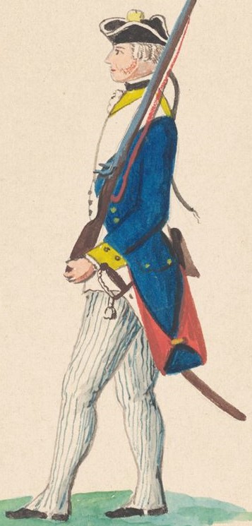 Image of Soldier: “Braunschw. Regt Prinz. Friedrich 1778,” in the collection of Friederich von Germann drawings, New York Public Library Digital Collections.