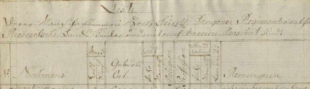 […] Enclosed herewith follows a list of all of the subjects of the Riedesel estate who served with the [Braunschweig] troops in America. Your high born will make arrangements so that the respective parents, relatives and friends may learn of the fates of those persons belonging to them, so that the frequent inquiries made until now may cease, and it will not be necessary to give an account for each individual man. Since this list has been carefully extracted from the regimental reports, it is authentic, and may serve in place of death certificates, and may also be used as credible evidence in any other legal matter.