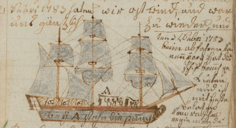 Featured Image: “Tagebuch des hessischen Soldaten Johannes Reuber über die Jahre 1775-1813,“ 8° Ms. Hass. 46[1], f. 160r, Universitätsbibliothek Kassel, Landesbibliothek und Murhardsche Bibliothek der Stadt Kassel.